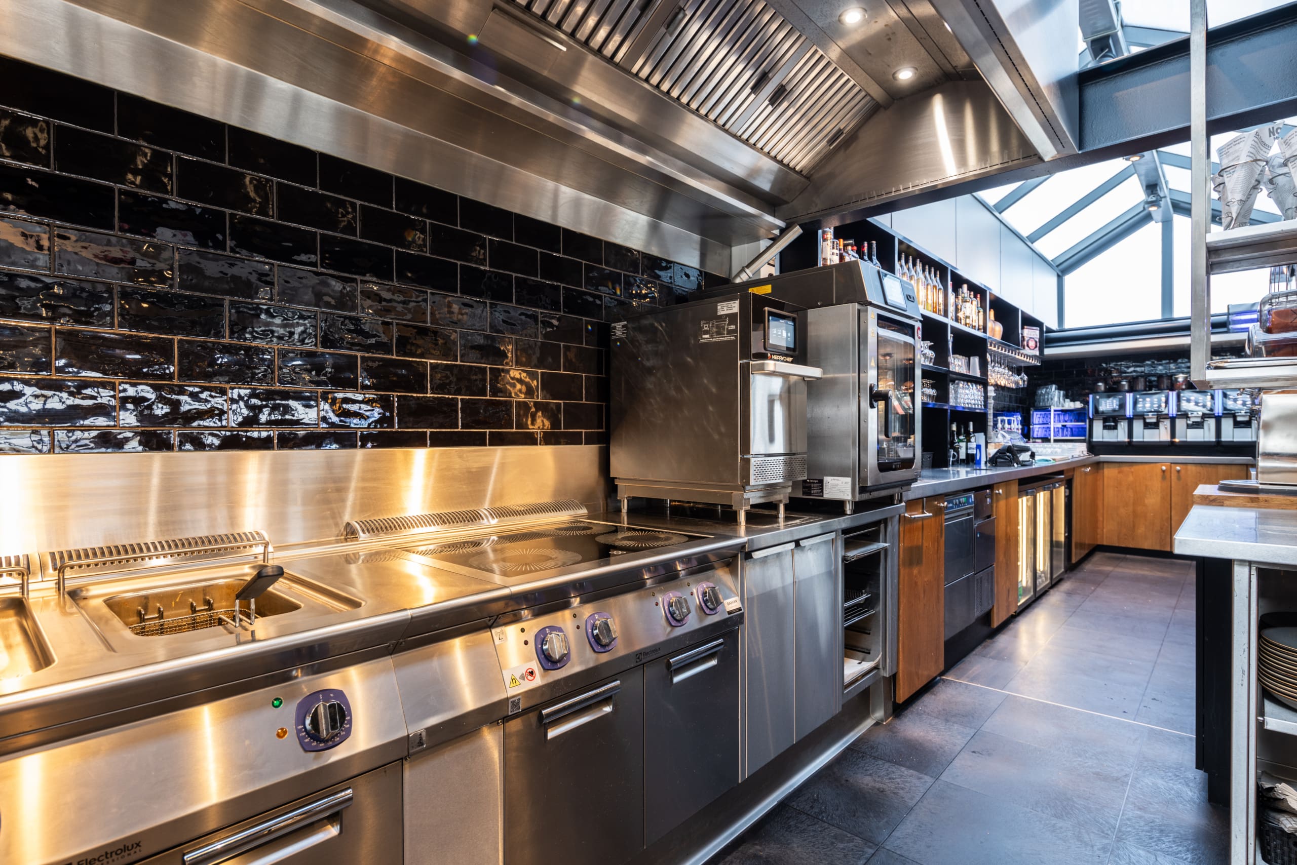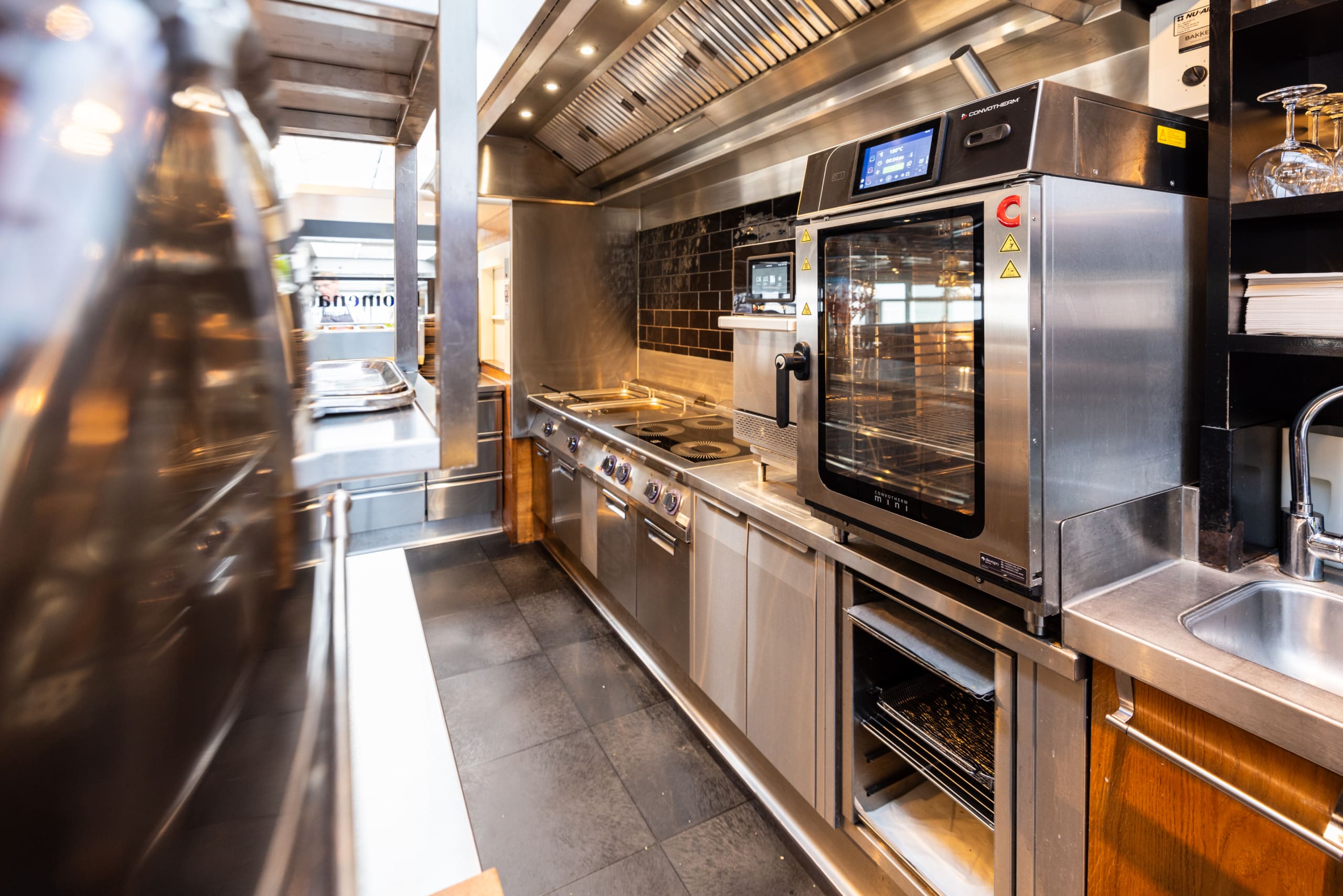 Maar tot voor kort bevond het keukenteam zich in de kelder van het restaurant. “Dat zorgde op een moment voor frictie bij ons keukenteam,” vertelt Walstra, “zij misten contact met de bediening en gasten, datgene wat het vak zo leuk maakt. Zeker in de huidige arbeidsmarkt was dit een probleem dat vroeg om een rake oplossing.” Daarom transformeerden we samen de opslagruimte tot een volwaardige keuken.