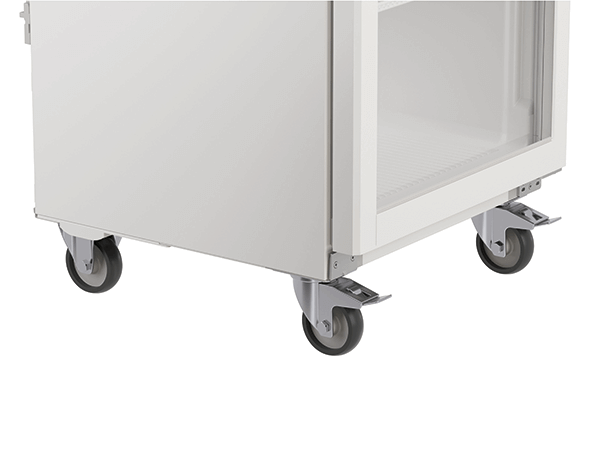5 draaibare wielen met een diameter van 100 mm zorgen ervoor dat het apparaat eenvoudig is te verplaatsen. 2 wielen zijn uitgerust met een vastzetrem. De wielen worden direct in het apparaat geschroefd.