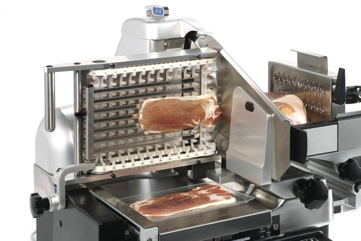 De DeKo 834 EPB is een volledig elektronisch gestuurde snijmachine die geschikt is voor het snijden van vleesproducten. Met deze machine kunt u zowel plakken keurig recht op elkaar stapelen als dakpansgewijs leggen. De plakdikte, de snijsnelheid, het stapelen, het dubbel stapelen en het dakpansgewijs leggen te programmeren.