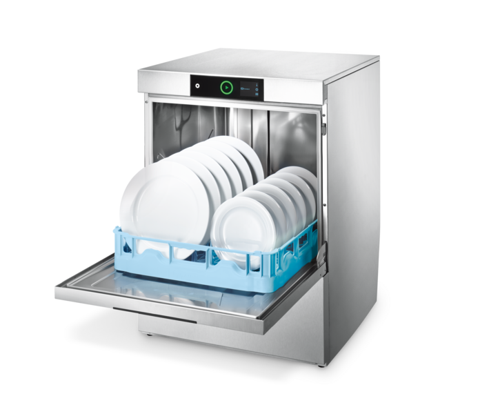 - Ready to install – volledig uitgerust: vul/ afvoerslang, stroomkabel (400 V aansluiting), dispenser reinigingsmiddel, dispenser naglansmiddel, naspoelpomp, afvoerpomp, waterterugstroombeveiliging (kiWa)