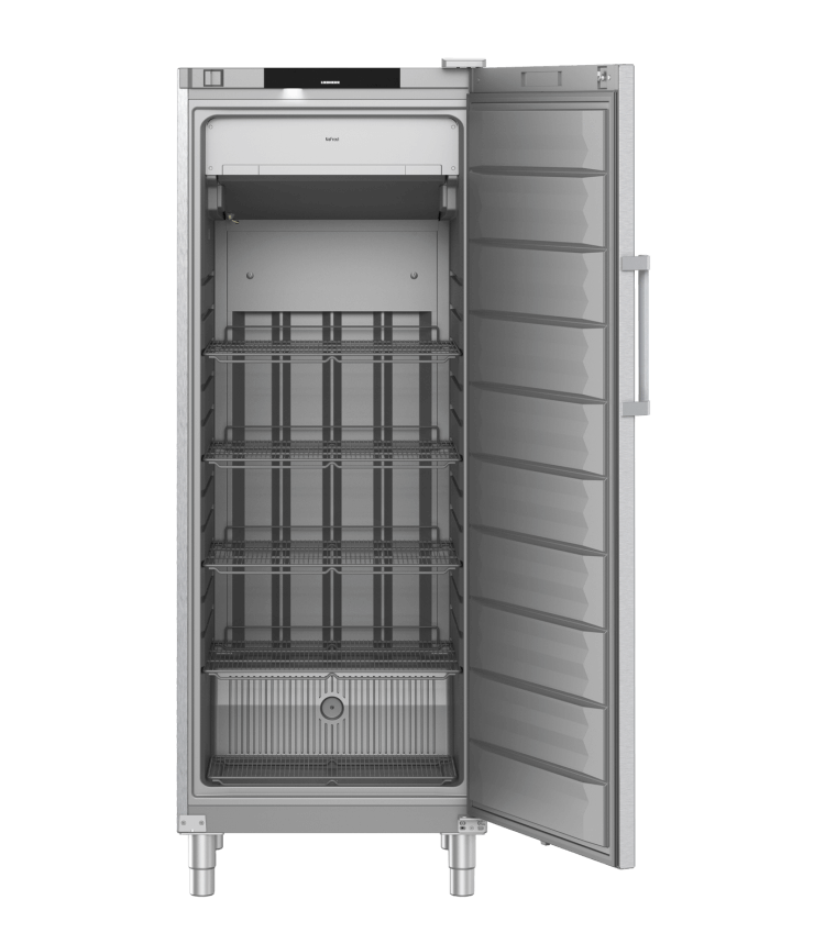 In deze roestvrijstalen dynamische vriezer met NoFrost ontstaat geen ijsvorming en is handmatig ontdooien niet nodig. Bij een 90° openingshoek blijft de automatisch sluitende deur open staan voor gemakkelijk in- en uitladen. Wanneer de deur te lang open staat zorgt het LigthAlarm dat dit snel wordt opgemerkt en kan worden opgelost. Door minimale temperatuurschommelingen blijven producten langer vers. Een herinnering kan worden ingesteld. Zo kun je bijvoorbeeld zien hoeveel dagen overblijven tot de volgende reiniging. Het aanraakdisplay is intuïtief dankzij de symbolen.